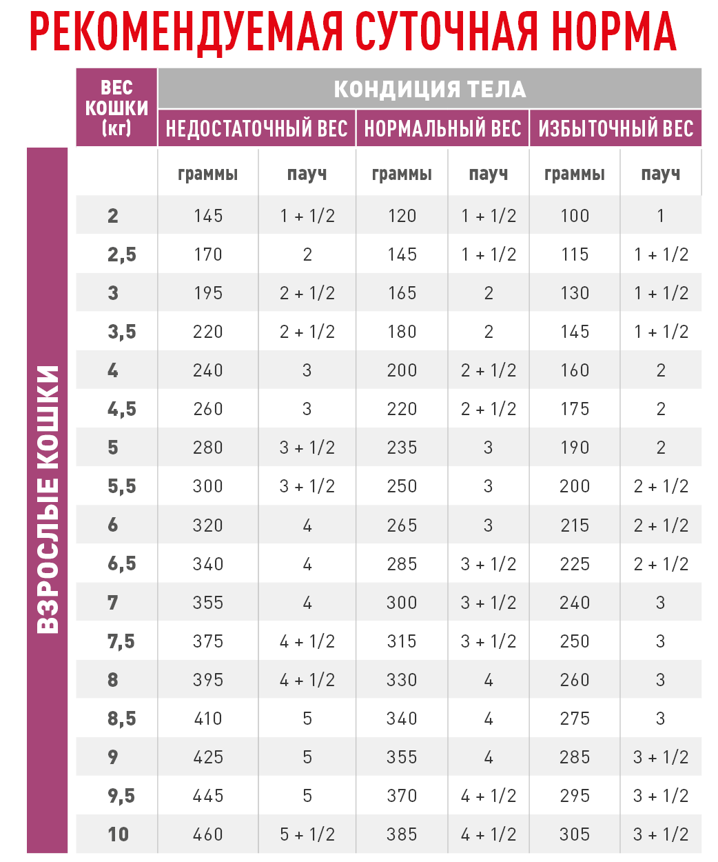 и/или - Зрелые кошки старше 7 лет, имеющие явные признаки старения.